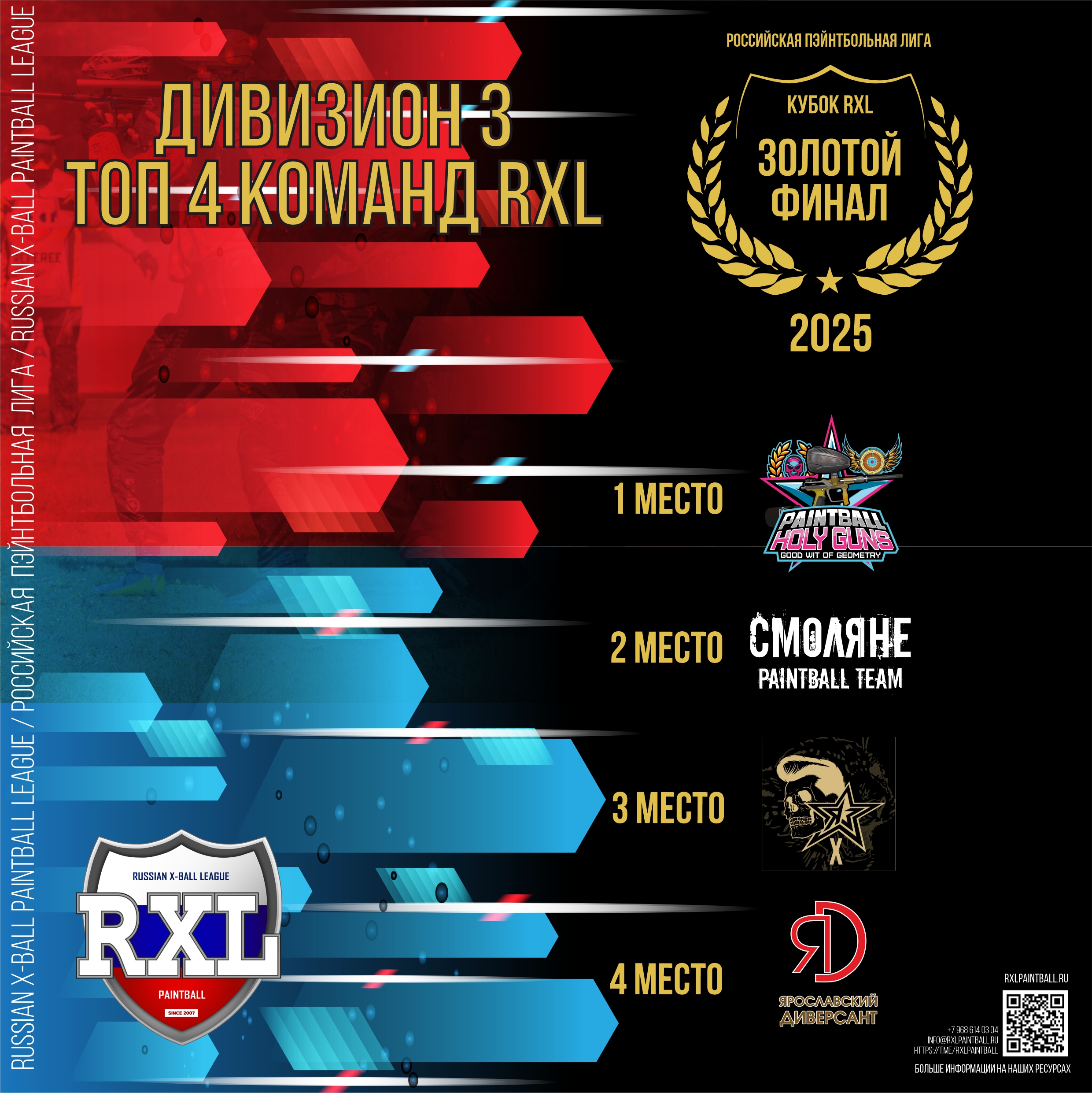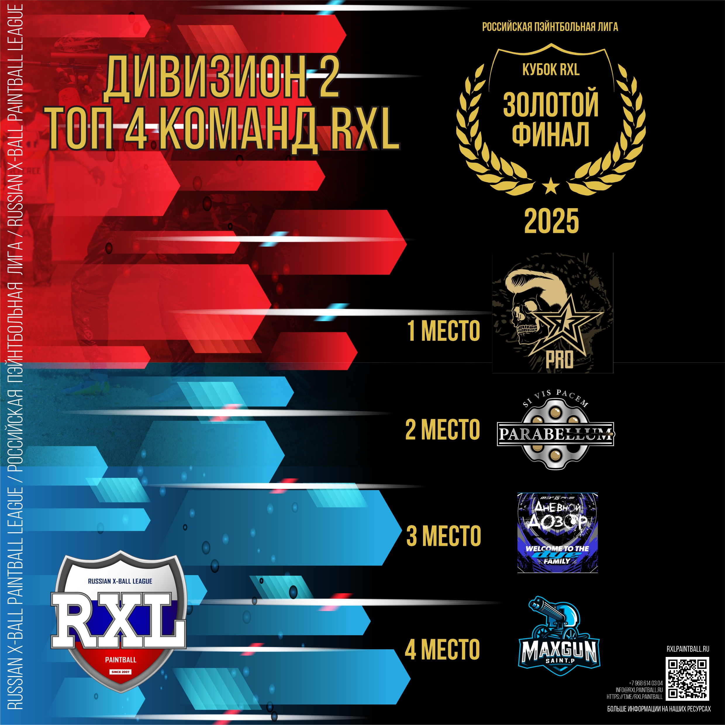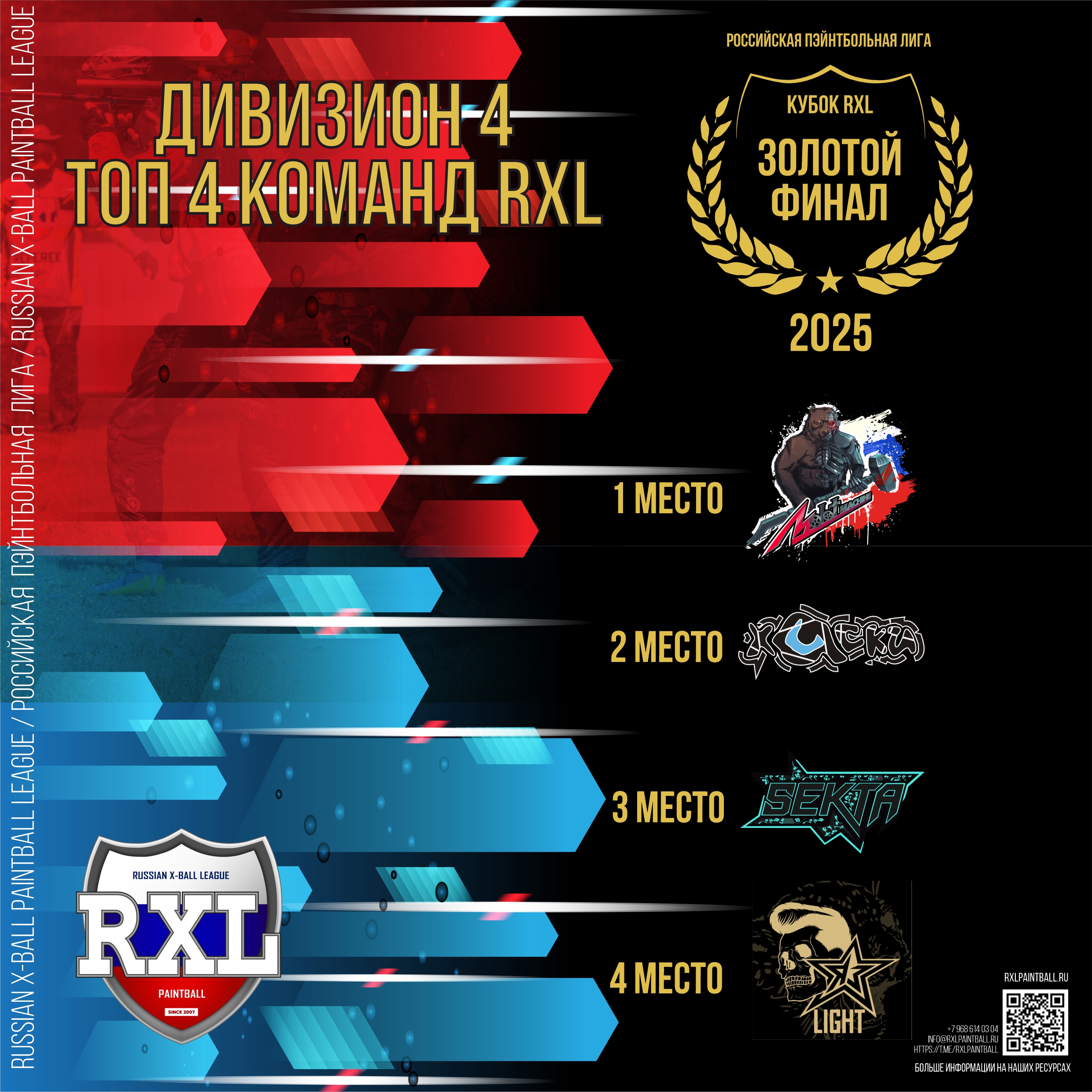 Итоги соревнований Золотого финала Кубка RXL 2025 г. ТОП 4 КОМАНДЫ из дивизионов 2, 3, 4.