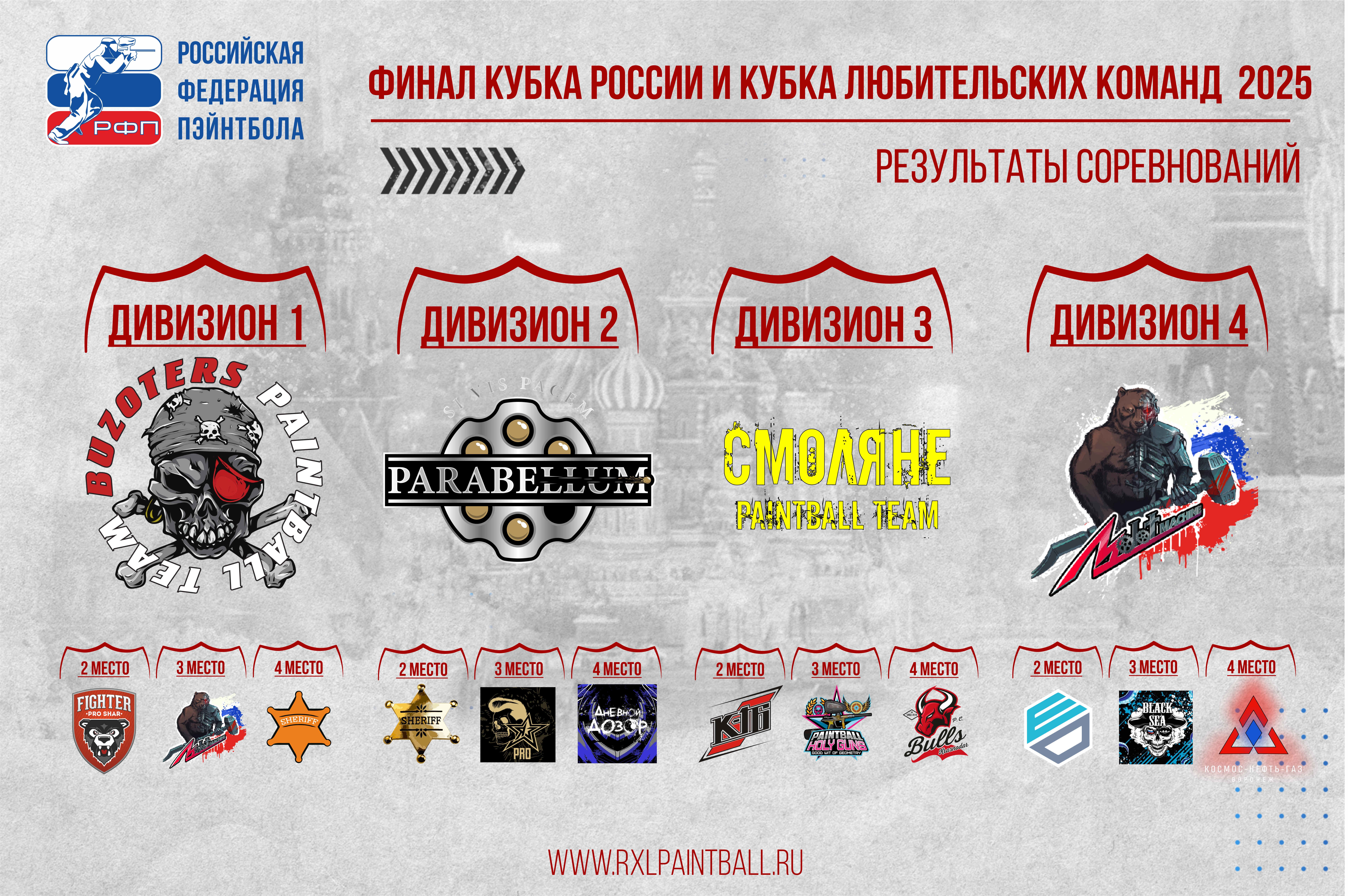 Поздравляем сильнейшие команды дивизионов Российской пэйнтбольной лиги в России! Ждем встречи на полях в новом сезоне!