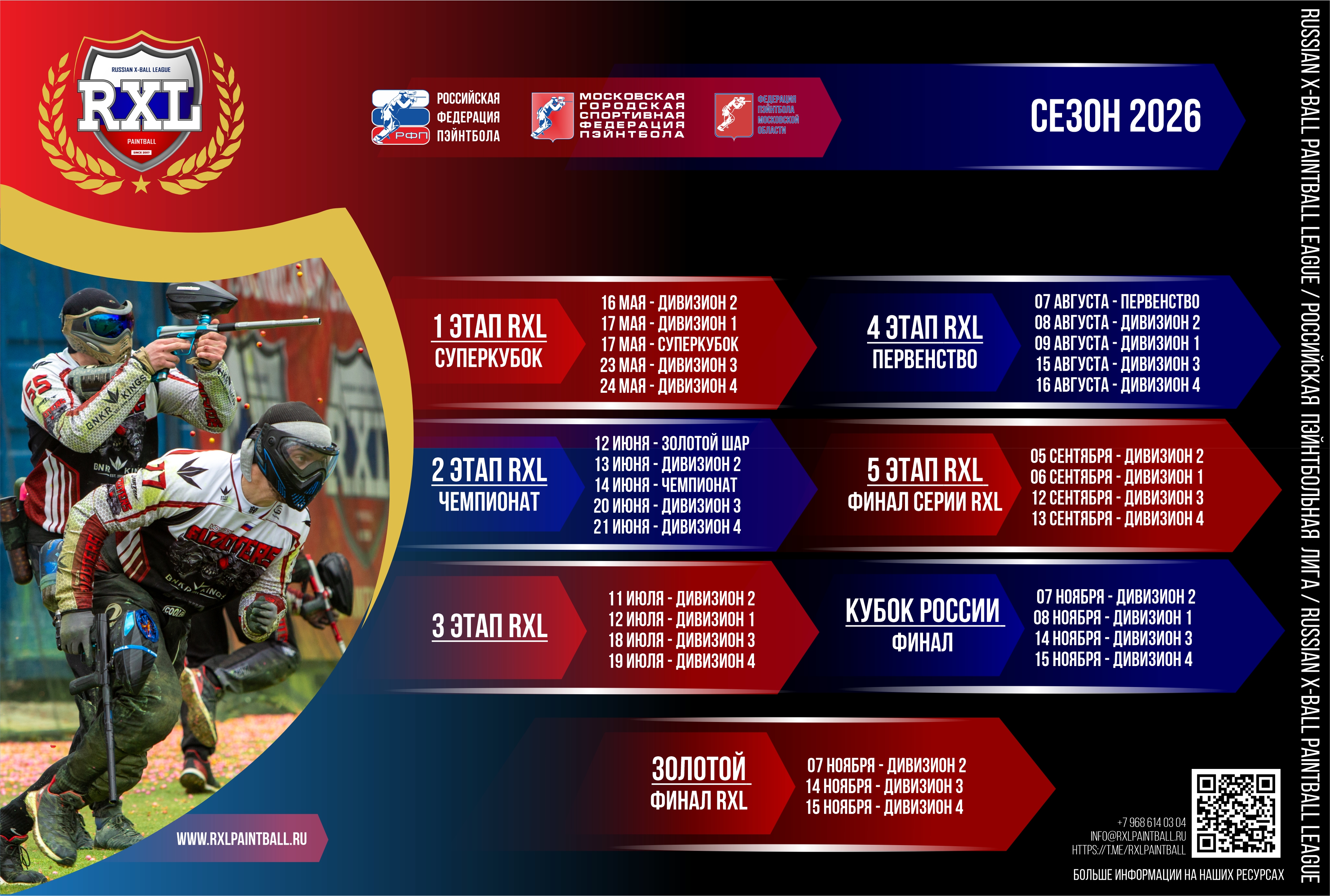 Рады представить календарь соревнований Российской пэйнтбольной лиги в сезоне 2026 года.